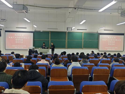 2025年10月24日下午,应计算机科学与技术学院物联网工程系邀请,联通(河南)产业互联网有限公司研发经理,物联网技术13级校友程哲在工程楼100教室为师生做了一场关于人工智能、应用驱动技术创新和大模型能力技术等方面的学术报告,并对自己在校学习、毕业后工作经历经验进行了分享。随后在计算机楼213会议室进行了座谈会,在行业发展、学业、就业和招聘等方面进行了深入交流,会议由物联网工程系主任邹东尧老师主持。