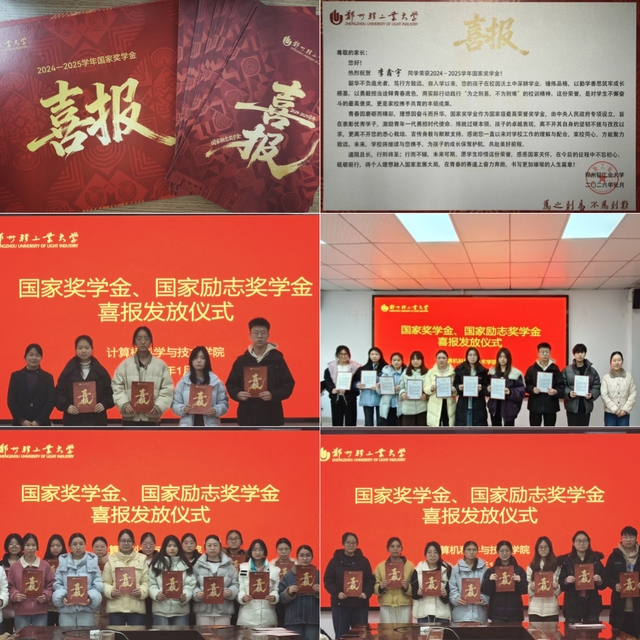 1月15日下午,计算机科学与技术学院在计算机楼213会议室举行国家奖学金、国家励志奖学金喜报颁发仪式,学院党委副书记刘放美、2024级辅导员及获奖学生代表参加仪式。