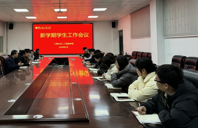 2月28日下午,计算机与人工智能学院在计算机楼213会议室召开新学期学生工作会议。学院党委书记宋文军、院长朱付保及全体辅导员参加会议,会议由学院党委副书记刘放美主持。 会上,刘放美总结回顾了上学期及寒假期间学生工作情况,围绕安全稳定、思想政治教育、日常管理、学风建设、就业创新、资助心理、队伍建设等方面部署新学期重点任务,强调要扎实做好返校情况摸排、学业警示教育、安全稳定教育及2026届毕业生就业工作。各专职辅导员汇报了新学期专项工作思路,并就重点难点问题进行交流探讨。 朱付保结合学院人才培养目标和学科特点,强调新学期学生工作要重点聚焦学风建设,联动班主任与学业导师做好学业预警和精准帮扶;要深化协同育人机制,加强学生学业规划与职业规划;要着力提升就业指导实效,鼓励学生通过竞赛和实践增强专业素养与就业竞争力。 宋文军在总结讲话中指出,学生工作是学院发展的基础,并提出三点要求:一是提高政治站位,落实立德树人根本任务,将思想政治教育融入日常管理全过程;二是筑牢安全防线,密切关注学生思想动态与身心健康,对重点学生群体做到早发现、早介入、早帮扶,通过网格化管理与宿舍走访强化安全教育;三是创新工作方法,结合学科特色与学生实际,推动学生工作与学院事业发展同频共振,提升育人实效。
