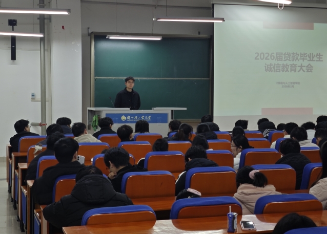 为助力毕业生规范履行贷款合约,保障学院助学贷款管理工作平稳推进,近日,计算机与人工智能学院在计算机楼118室召开2026届校园地贷款毕业生诚信教育大会。学院2026届校园地贷款毕业生参加会议,会议由学院资助工作辅导员李迎港主持。 会上,学院资助工作辅导员李迎港结合真实数据案例,阐释信用评级与住房贷款审批、职业资格认证、职场发展等个人核心权益的紧密联系,通过具体场景强化学生的履约自觉,进一步压实按时还款的责任意识。随后,学院资助工作学生助理现场演示国家开发银行助学贷款管理系统的操作流程,逐项讲解支付宝账号绑定、密码重置及线上还款等步骤,确保学生掌握实操要点。大会还设置了诚信宣誓环节,全体贷款毕业生在学生代表领誓下庄严宣誓,承诺严格遵守国家助学贷款相关规定,自觉履行还款义务,按期足额偿还贷款本息。 本次会议使2026届校园地贷款毕业生对助学贷款政策及还款流程形成系统认知,增强了学生的诚信意识与责任担当,也为学院后续助学贷款贷后管理工作奠定了坚实基础。 |