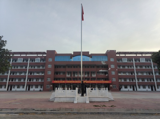 早晨6点40分,国旗护卫队迈着整齐有力的步伐,护送五星红旗走向升旗台。随着激昂的《义勇军进行曲》奏响,升旗手振臂一挥,鲜艳的五星红旗在朝阳的映照下冉冉升起,迎风飘扬。全体师生面向国旗行注目礼,高唱国歌,表达对伟大祖国的深深敬意和无限热爱。