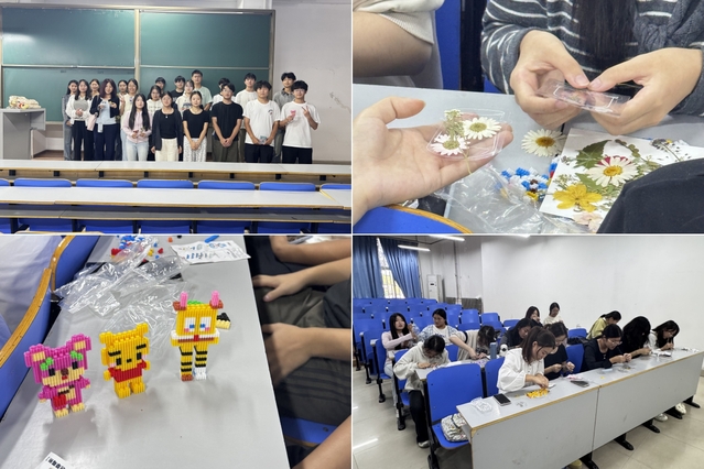 10月9日下午,智能物联2024级2班在计算机楼118室举办了“心灵手巧,美好由我定义”主题心理减压活动。活动分为干花书签制作与创意积木拼搭两部分。干花书签环节,参与者将干枯花瓣、叶片设计成独特书签,在创造中感受内心平静。积木拼搭环节则氛围热闹,五彩积木在参与者手中变为城堡、机器人、抽象雕塑等,独自挑战的成就感与同伴协作的欢笑声,成了活动中动人的音符。