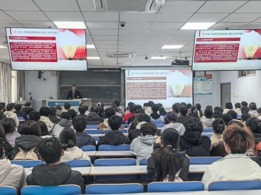 宋文军聚焦中央八项规定精神内涵,紧扣新生成长需求,从“深入把握中央八项规定精神实质”“大力弘扬清正廉洁新风正气”“作风建设与学生成长内在契合”三个部分详细阐释了中央八项规定精神的核心内容与实践要求。他指出,中央八项规定精神不仅是党内政治生活的重要准则,也为青年学生实现从‘象牙塔’到‘责任田’的认知觉醒提供了强大精神动力,广大青年学子要严格遵守法律法规和学校各项规章制度,做到心有所畏、言有所戒、行有所止;要切实增强责任感与使命感,通过品读“信仰之书”锚定人生方向,精读“专业之书”构筑能力基石,泛读“人文之书”开阔人生视野。