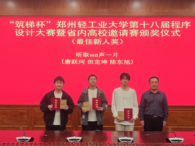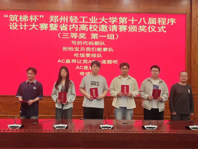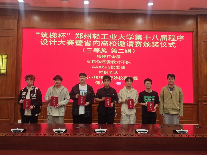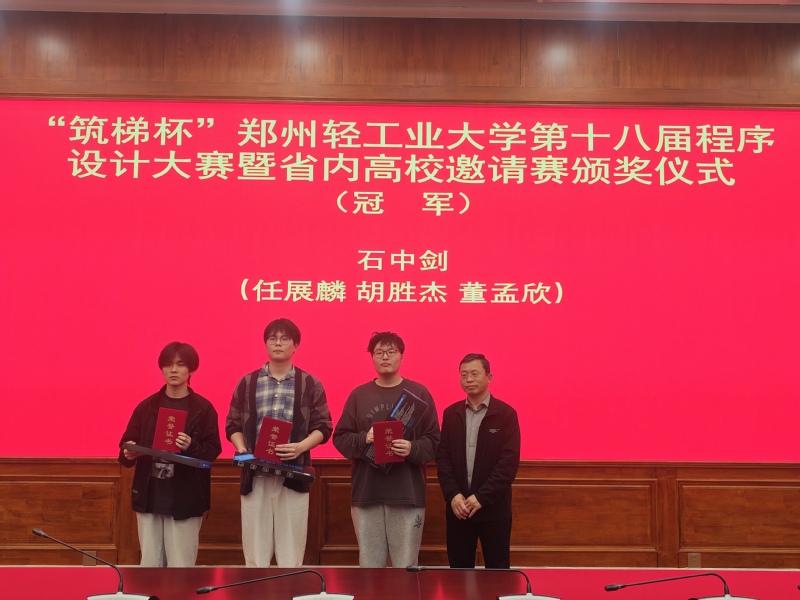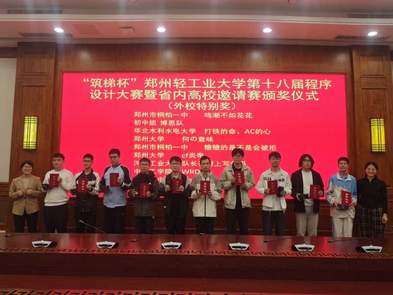 上午十时,比赛正式拉开帷幕。随着一道道题目被成功解答,赛场上陆续升起彩色气球,现场气氛紧张而热烈。经过五个小时的激烈角逐,由来自郑州市桐柏一中等学校的信息学竞赛生组成的两支队伍夺得冠亚军,我校获得季军,另外郑州大学、河南工业大学、华北水利水电大学、中原工学院均有队伍跻身前十。本次大赛面向校内队伍设置了特等奖1项、一等奖4项、二等奖8项、三等奖12项及最佳新人奖1项,同时为外校队伍设立了10项外校特别奖。由我校嵌入式专业2024级学生任展麟、董孟欣、胡胜杰组成的“石中剑”队荣获特等奖。