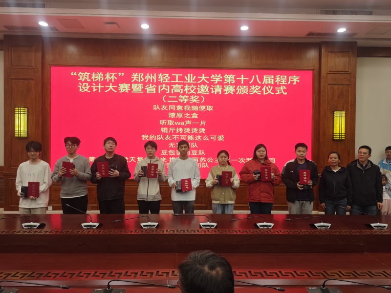 4月6日,“筑梯杯”郑州轻工业大学第十八届程序设计竞赛暨河南省高校邀请赛在科学校区成功举办。本次大赛共吸引139支队伍、四百余名选手参赛。除本校49支队伍外,大赛还吸引了来自郑州大学、河南大学、河南工业大学、河南农业大学、华北水利水电大学等17所省内高校及中学的90支队伍前来交流竞技。本次大赛由我校2011届校友、2007级ACM队员沈建荣与王现凯共同创办的北京筑梯科技有限公司冠名赞助。